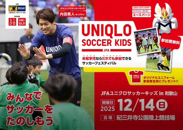 JFAユニクロサッカーキッズ in 和歌山 12月14日(日)開催 本日10月7日(火)から参加者募集開始