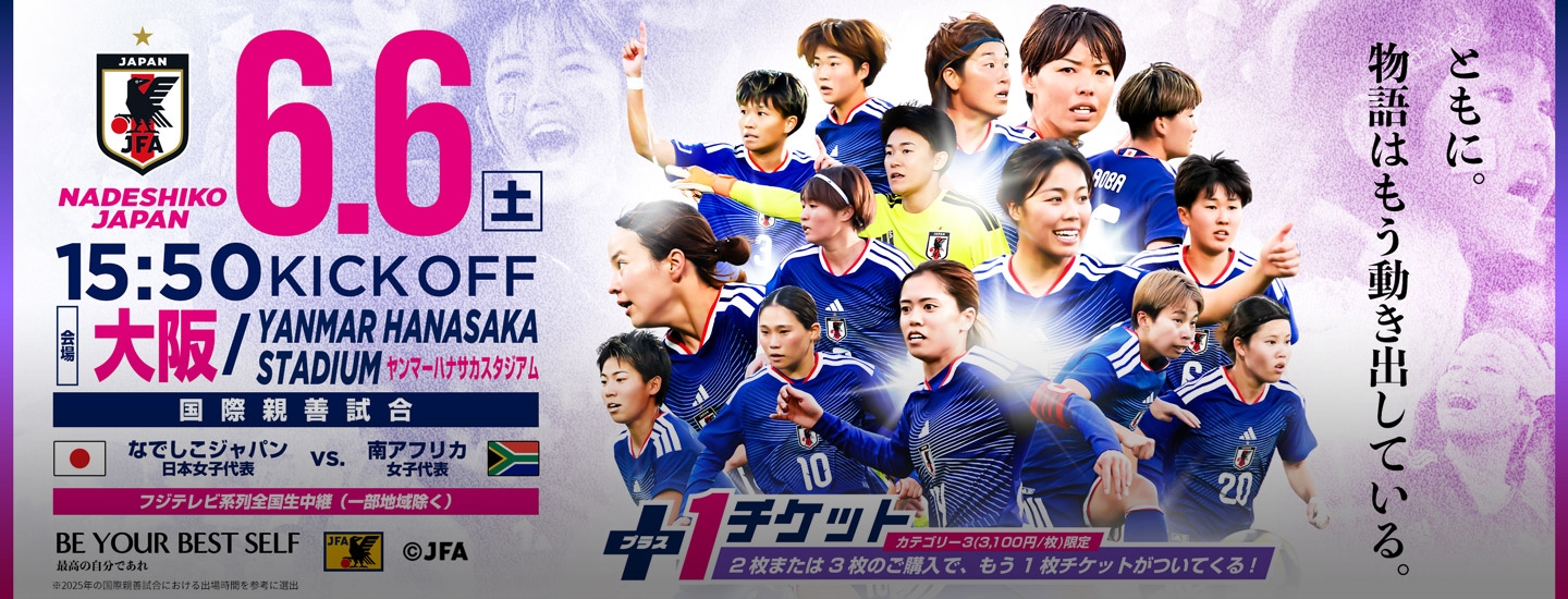 チケット販売概要・キックオフ時間決定のお知らせ なでしこジャパン(日本女子代表)国際親善試合 6月6日(土)@大阪/YANMAR HANASAKA STADIUM(現ヨドコウ桜スタジアム)