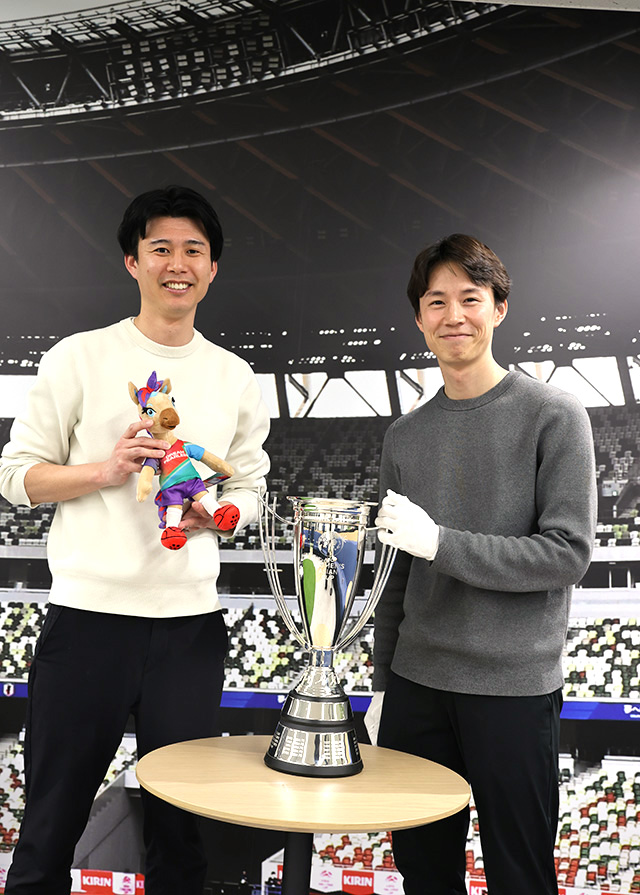 なでしこジャパンが掲げた優勝カップがYANMAR HANASAKA STADIUMに上陸!