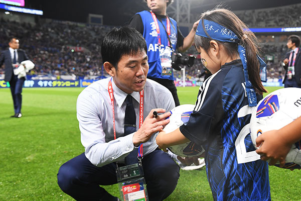 選手がウォーミングアップでピッチに登場する際、サイン入りミニボールをスタンドに投げ入れてプレゼントします!