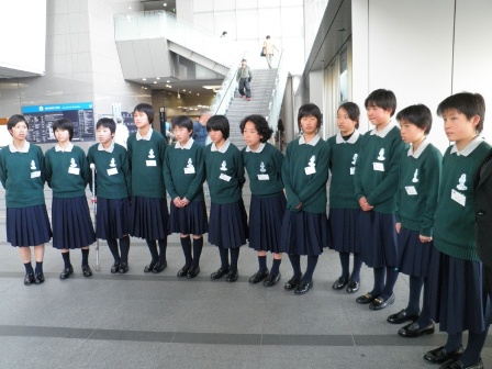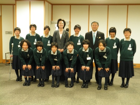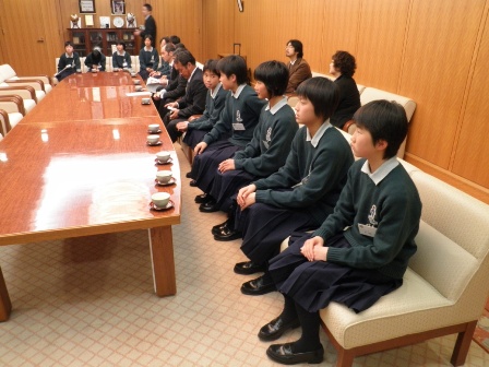市長の来室を待つ間、非常に緊張した面持ち。出していただいたお茶は市長のご到着前にみんな飲み干し・・。