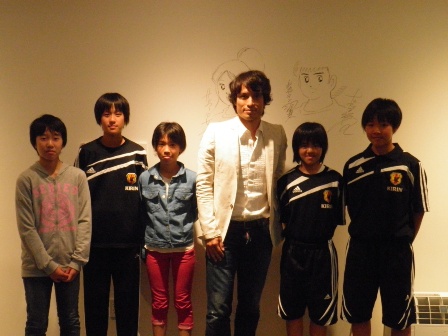 偉大な、そして憧れのサッカー選手からの言葉に、ただただ笑顔で固まる選手達。