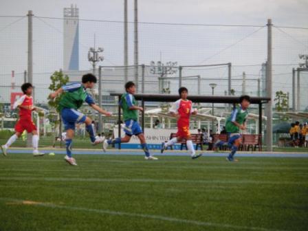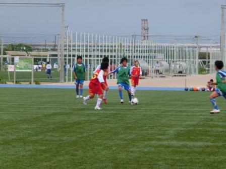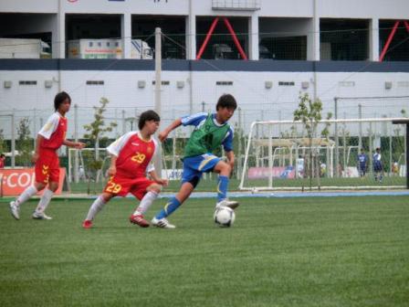 ゲームを行っていました。この日は調度、大会中日だったため、月州中学校はJ-GREEN堺にトレーニングに