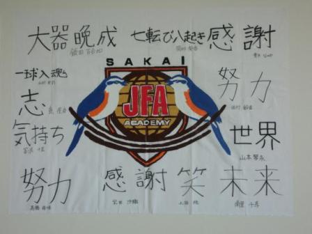 中央に描かれているのは、「JFAアカデミー堺」のエンブレムです。そして、その周りに書かれているのは