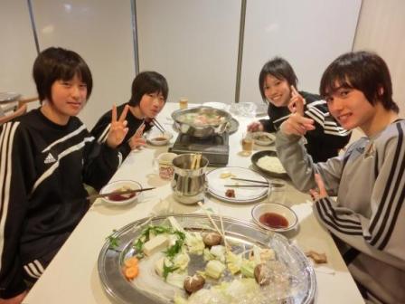 両校の選手が鍋を囲み夕食を摂ります。少しずつお互いの距離が近づいていきます。