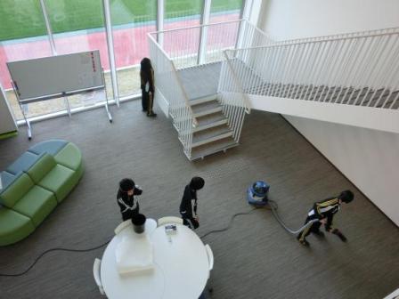 まずは、朝の掃除です。同室の先輩に連れられ、見よう見まねでやってみます。