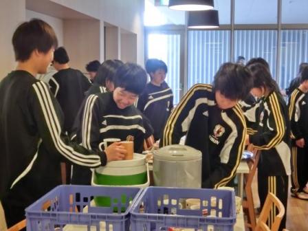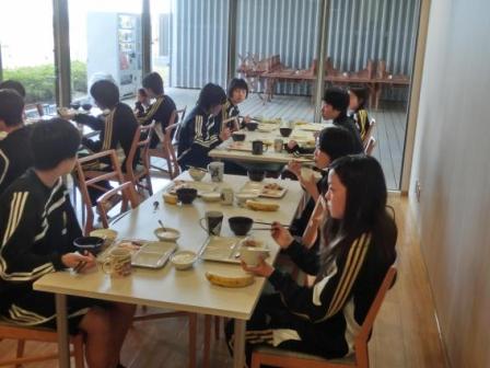 仲間と笑顔で楽しく食べることが一番の調味料かな。おかわりもたくさんして、3年間でアスリートとしての
