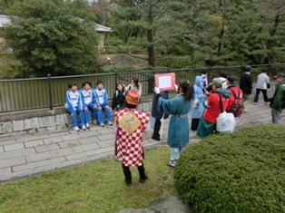 途中なぜか、大道芸人さんによる堺の歴史の説明を貸切、かぶりつきで鑑賞。