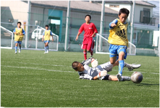 (南里慧斗のシュートを必死に防ぐ小川中GK・DF)(試合終了後相手GKに握手を求める本村涼馬)