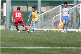 (サイドでボールを受ける瀧上優) (ハーフタイムの小川中学校)