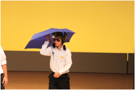 (生徒会劇にて熱演する藤川拓哉)