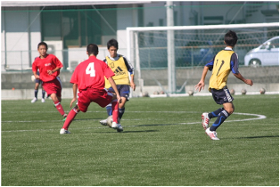 (サイドバック河原創のオーバーラップ) (吉岡樹利也の顔フェイント)