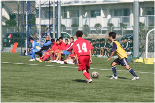 (中村健人→矢野達基へのパス) (ボールキープする和田鉄男と3期生応援団)