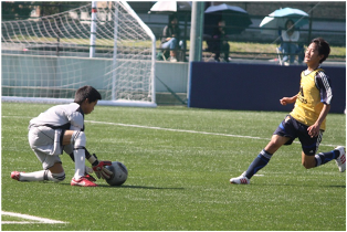 (矢野達基惜しくも届かず…) (瀧上主審の前で動きも表情も固い一美和成)