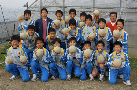 小川町サッカー協会会長の徳永さんのメロン農家で先日収穫したオリジナルメロンも、この機会に保護者の