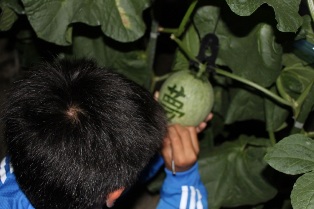 メロン農家を訪問し、オリジナルメロンつくりを体験しました。
