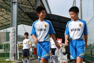 たくさんのゴミを拾い満足げな4期生:一怜哉(UKI-C.FC)林田滉也(カティオーラFC)