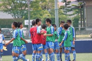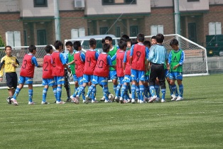 試合前の挨拶 3期生:緑ビブス 4期生:赤ビブス