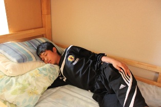 普段はなかなかできない昼寝中の4期生:中村豪(FCKマリーゴールド熊本)