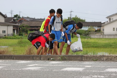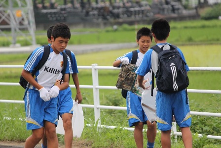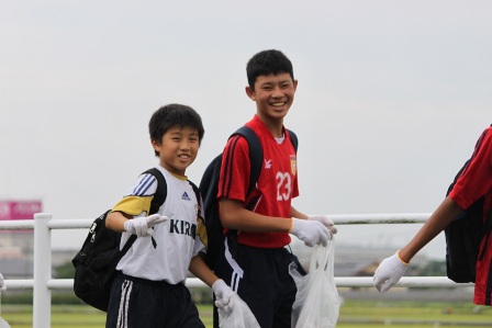 大きなゴミを見つけた4期生:宮本優(UKI-C.FC)と佐藤龍大(カティオーラFC)