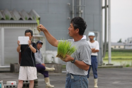 ラオスの選手に田植えを伝授する5期生:大場剛(大分トリニータ宇佐)