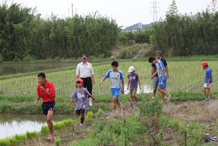 戦いのウォーミングアップもかねて、田んぼまでの道中は日頃からお世話になっている小川町の
