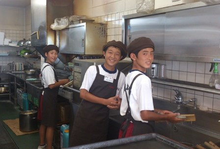 宮本 優「職場体験ではカレー、胡麻豆腐、クレープ、じゃがいもアイスなどいろいろなものを作り、仕事の楽しさが分かりました。また、掃除、器拭き、座布団入れは大変でした。仕事の楽しさと大変さとどちらも体験できてよかったです。」