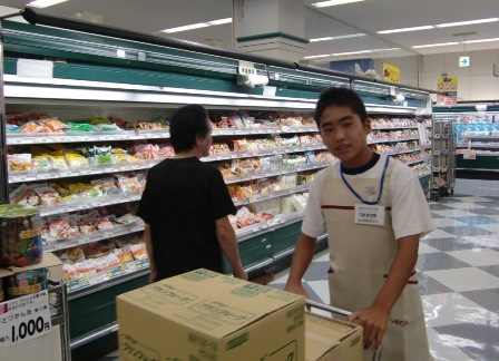 中村豪「僕はスーパーに勤務しました。魚屋さんでパックをしたり、惣菜づくりで玉ねぎや人参をみじん切りにしました。心を込めて作った商品が売れることのうれしさと、働くことの大変さを感じることが出来ました。」