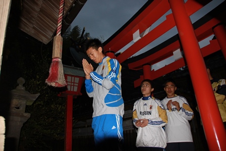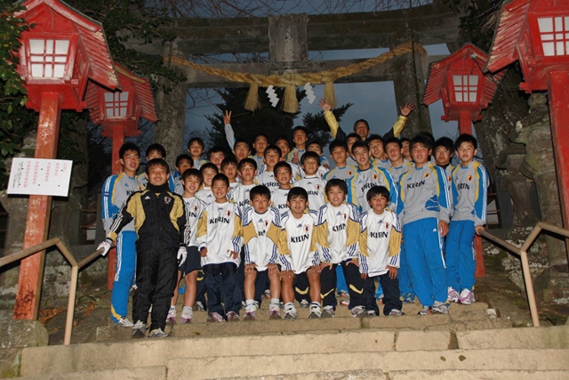 アカデミーでの今年初のトレーニングは、近くの守山八幡宮への初詣から始まりました。