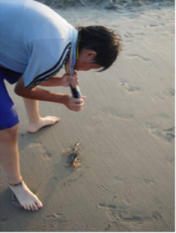 カニと戯れたり、海に入ってはしゃいだり。自然との触れ合いを個々に楽しむ、日常生活とは