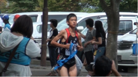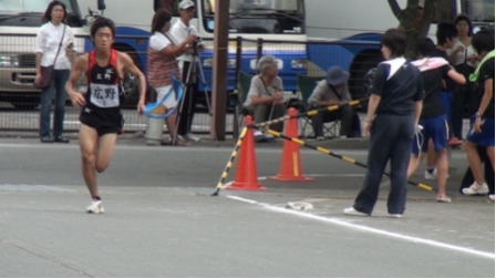 5区 小池 6位をキープ そしてエースの広中サッカー部の柳井君へたすきが渡される