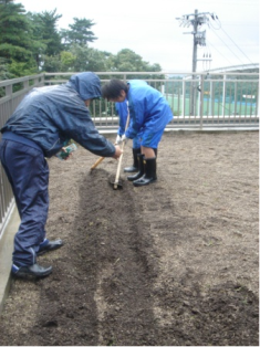 畑づくりと種まきの指導