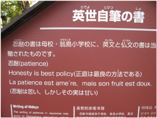 (英世が母校小学校に贈った言葉 @野口英世記念館)