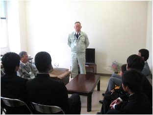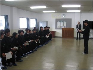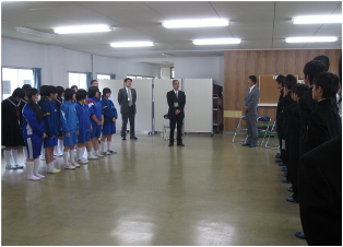 (広野中学校訪問。校長先生から激励の言葉をいただきました。)