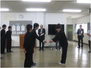 広野中学校では、現時点で戻ってきた生徒と先生方が激励会を開いてくださいました。吉田校長先生から「離れて
