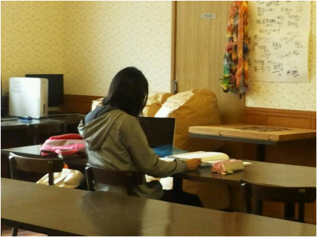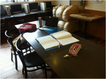空き時間、しんと静まった学習部屋で資料とパソコンを駆使しながら、学習を進めます。