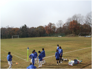 試合開始時には青空が広がりポカポカとした陽気の中キックオフしました。