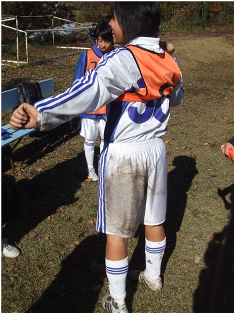 がしかし、ピッチ状態は昨日の雨で緩んでいてあっと言う間にユニフォームは白から黒に(苦笑)