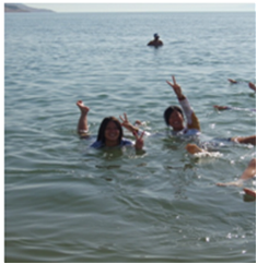 塩分濃度が高いため口の中や目に入ってしまうと大変危険で潜ることはできませんでしたが久しぶりの広い海にみんな大はしゃぎです。
