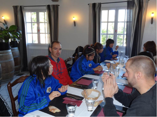 練習が終わり、学校で夕食です。これまた、フランス人はゆっくり食べられないのです。
