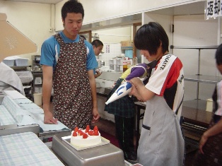 女子はバースデーケーキを、男子はピザを作ります。