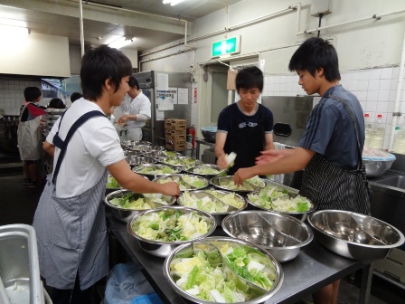 こちらは鍋担当。野菜やお肉を鍋に分けていきます。