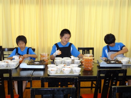 こちらはキムチ担当。お椀にひたすらキムチを分けます。