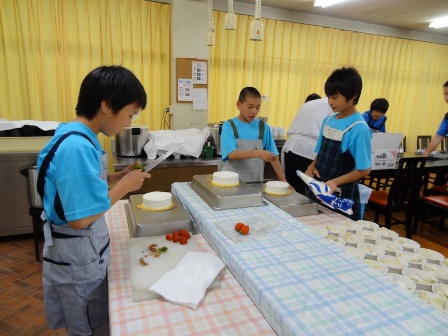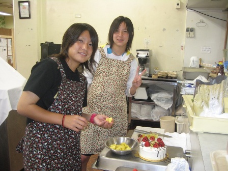 こちらはバースデーケーキ担当。フルーツや生クリームでデコレーションします。