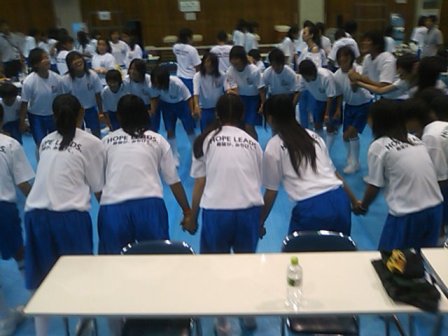 セレモニーに臨む出演者のみなで直前の団結式