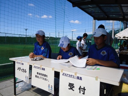 男女高校1・2年生は「第36回全日本少年サッカー大会」の期間中に試合記録の作成や食事会場の