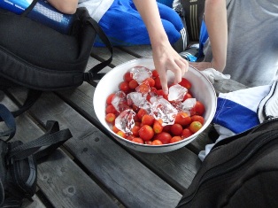 試合後、河内SCジュベニールさんから冷やしトマトの差し入れを頂きました。