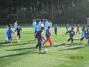 最後に、福島県のキッズエリートの選手がサッカーを楽しんでいる姿を見て、自分たちも