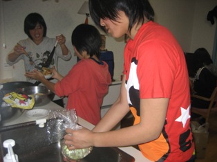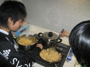 私達のグループは中学生がチャーハン、高校生がほうれん草のバター炒めを作りました。