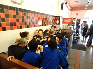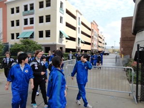 練習試合後は、相手チーム選手と一緒にお昼ごはんを食べ、NBAの試合を観戦しました。一昨年に観てから二度目の観戦でしたが、やはり迫力がありとても盛り上がりました。試合前には、NBAの選手が入場する時にハイタッチで迎えることができ、すぐ近くで見ることが出来ました。